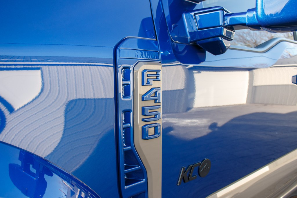 Argon Blue (featured in the photos above) is one of the newest color options available for the F-450 in 2026. The other is Marsh Gray. The two-tone color scheme options, featured on previous King Ranch and Lariat models, also return in 2026.